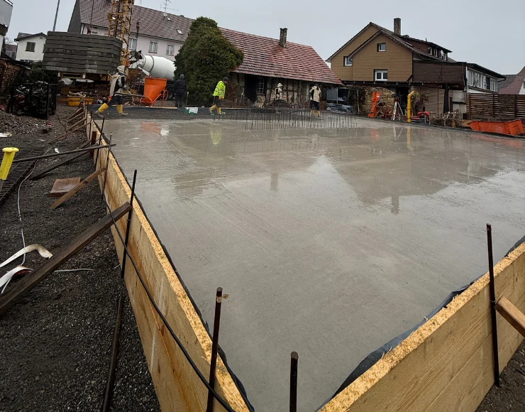 Von September bis November 2025 realisierten wir in Rielasingen für Hegau Küchen die Bodenplatte als tragfähige Basis für den Neubau. Der Leistungsumfang umfasste Fundament und Stahlbetonarbeiten, die Ausführung einer belastbaren Industriebodenplatte sowie Kanal, Dämm und Abdichtungsarbeiten. Durch präzise Planung und saubere Umsetzung entstand eine dauerhaft stabile und funktionale Grundlage für den weiteren Baufortschritt.
