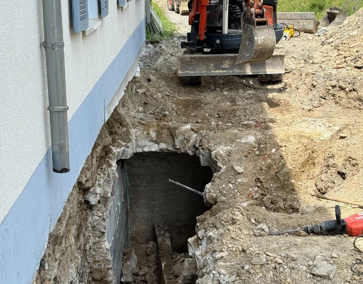 Von April bis Mai 2025 führten wir in Aach die Kellersanierung der rund 300 Jahre alten Papiermühle auf 400 Quadratmetern durch. Die Arbeiten umfassten Tief und Rückbau, Grundwasserabsenkung, Abdichtungsmaßnahmen sowie Stahlbeton, Kanal und Maurerarbeiten. Mit technischem Know how und besonderer Sorgfalt im Bestand wurde die historische Substanz gesichert und dauerhaft gegen Feuchtigkeit geschützt.