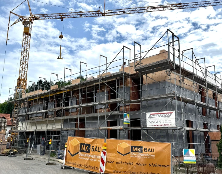 Im Zeitraum von Januar bis November 2025 realisierten wir in Schienen bei Öhningen den Neubau eines Mehrfamilienhauses mit einer Grundfläche von 1.700 Quadratmetern. Das Projekt umfasste sämtliche Arbeiten von Erd und Abbrucharbeiten über Beton und Mauerarbeiten bis hin zu Fassaden, Dämm und Putzarbeiten. Eine durchgängig koordinierte Ausführung sorgte für Qualität, Effizienz und einen reibungslosen Bauablauf.